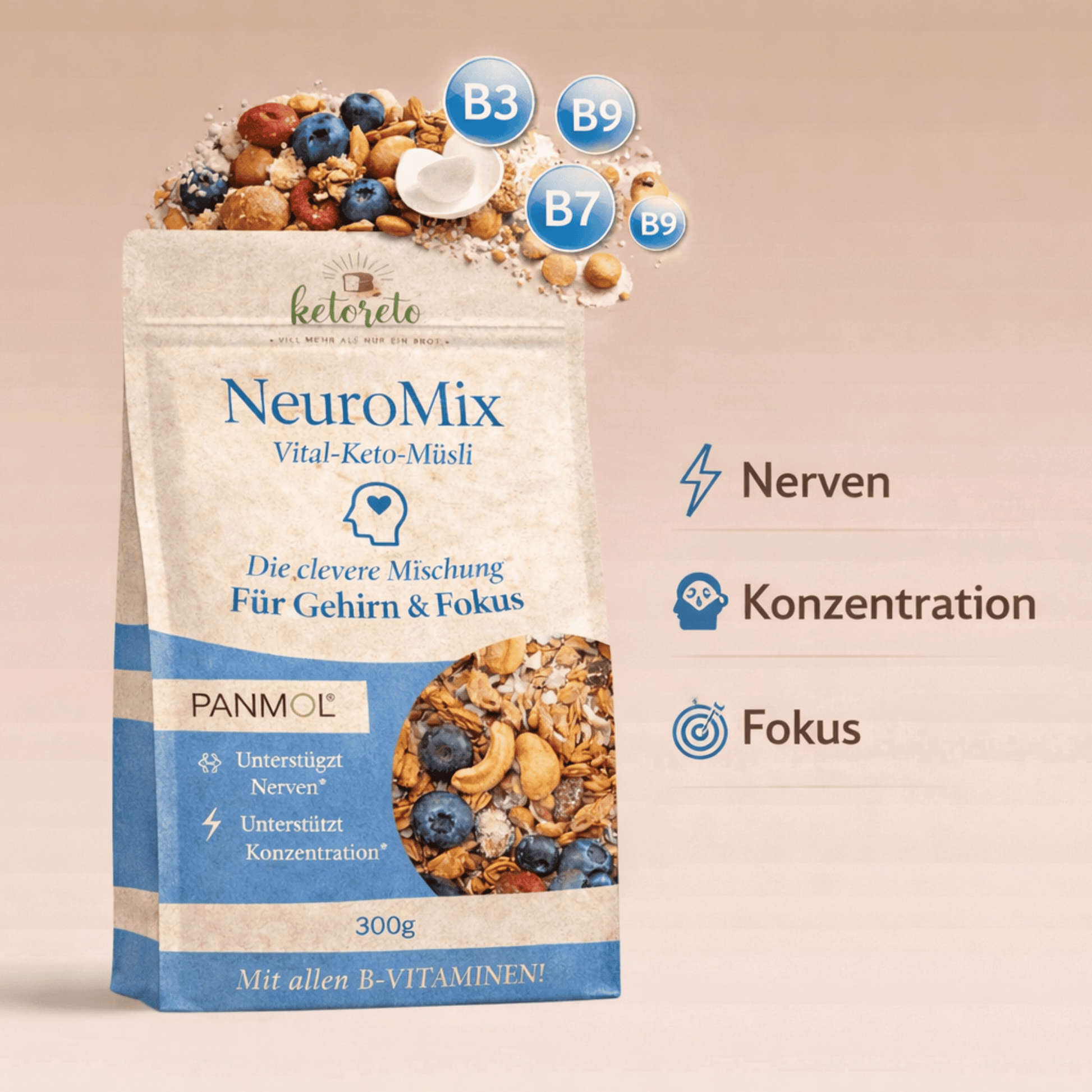 Knusprig, fruchtig, proteinreich und funktional – NeuroMix ist Nervennahrung mit Anspruch, ideal für Schule, Alltag, Sport und Konzentrationsphasen. Perfekt auch für Kinder, die starke Nerven brauchen.